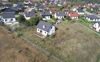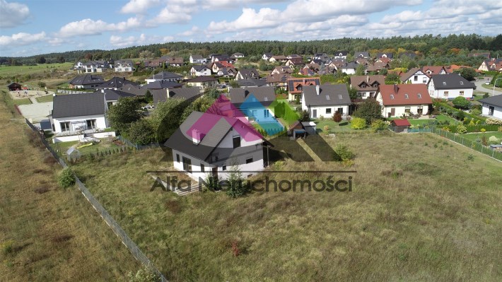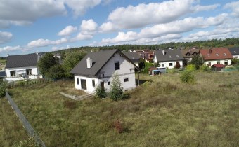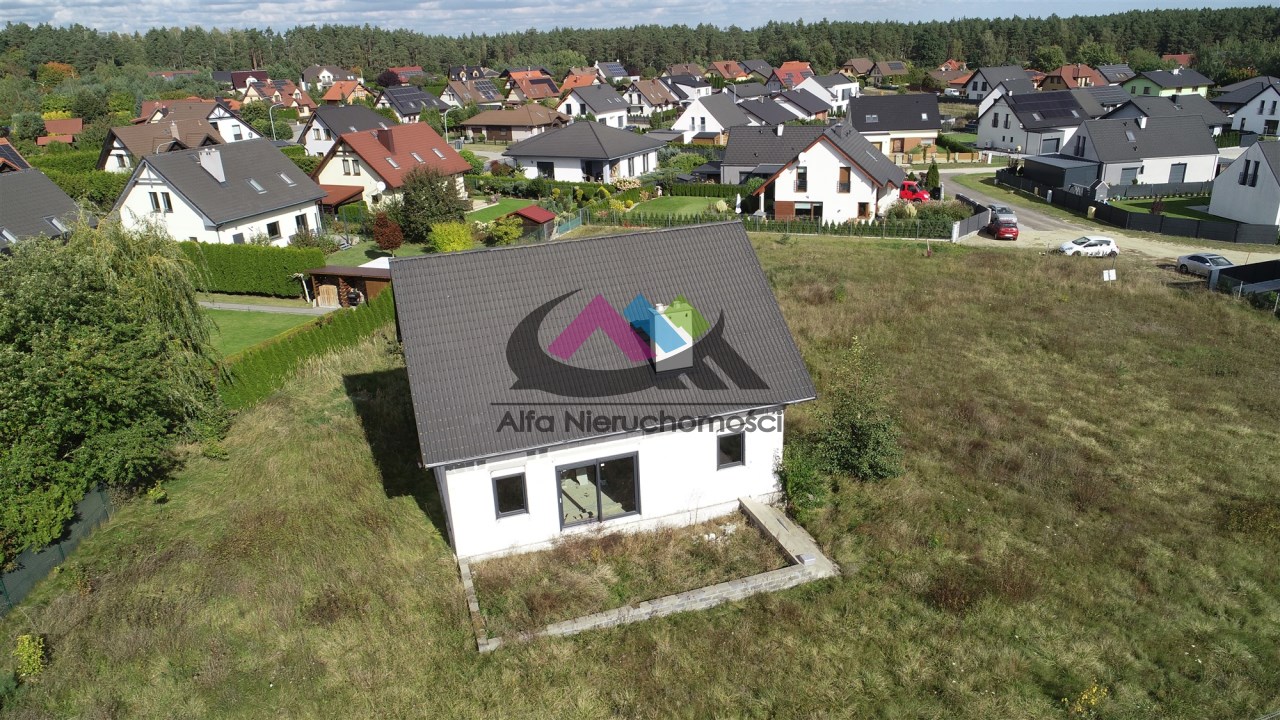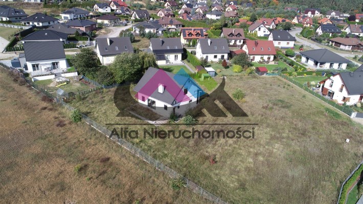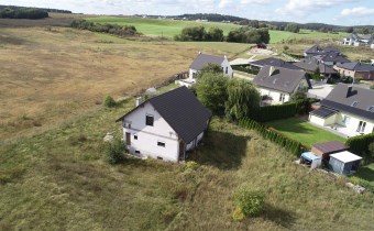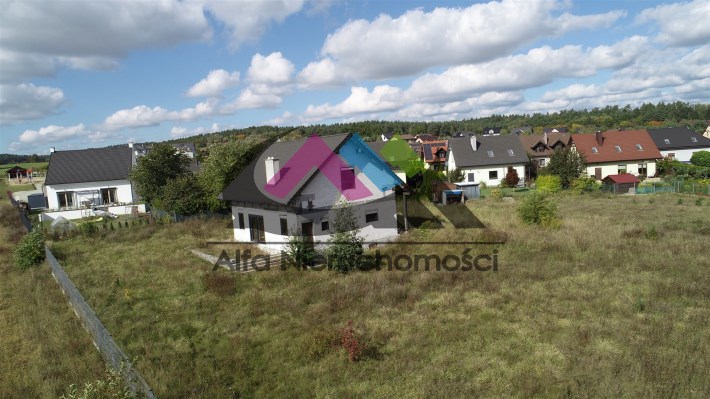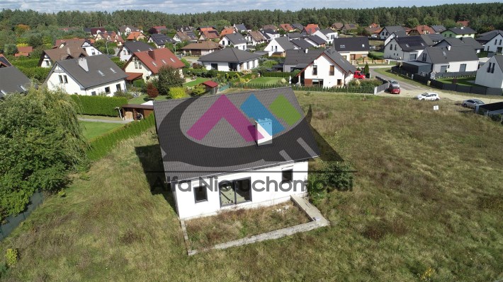 Dom w stanie surowym zamkniętym na osiedlu domów jednorodzinnych.