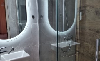 NOWA Łazienka płytki, ogrzewanie podłogowe, kabina, bojler eklektyczny Ariston.